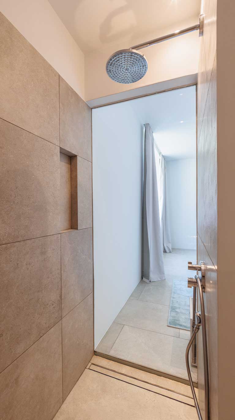 Die Villa Elia bietet die Möglichkeit, das Haupthaus unabhängig vom Gästehaus zu mieten. Das Haupthaus ist perfekt für einen romantischen Aufenthalt zu zweit. Es besteht aus einem großzügigen Schlafbereich mit Ankleide und Bad sowie einer eigenen Veranda, die absolute Privatsphäre und Ruhe ermöglicht.